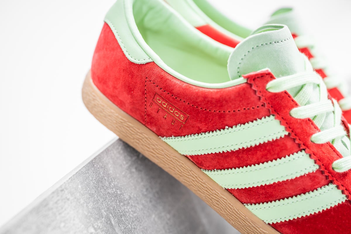 Der adidas Stadt überzeugt durch sein zeitloses und klassisches Design. Dieses Modell ist den Fußballfans gewidmet, die in den vielen Städten der Welt zu Hause sind und den Sport tagtäglich feiern. Das Design erinnert stark an die adidas Modelle Tobacco und Trimm Star. Dennoch zeigt der adidas Stadt mit den lauten Colorways und der Gumsole seinen ganz eigenen Charme. Wer die alten Vintage Sneaker von adidas feiert wird den flachen Style lieben.
