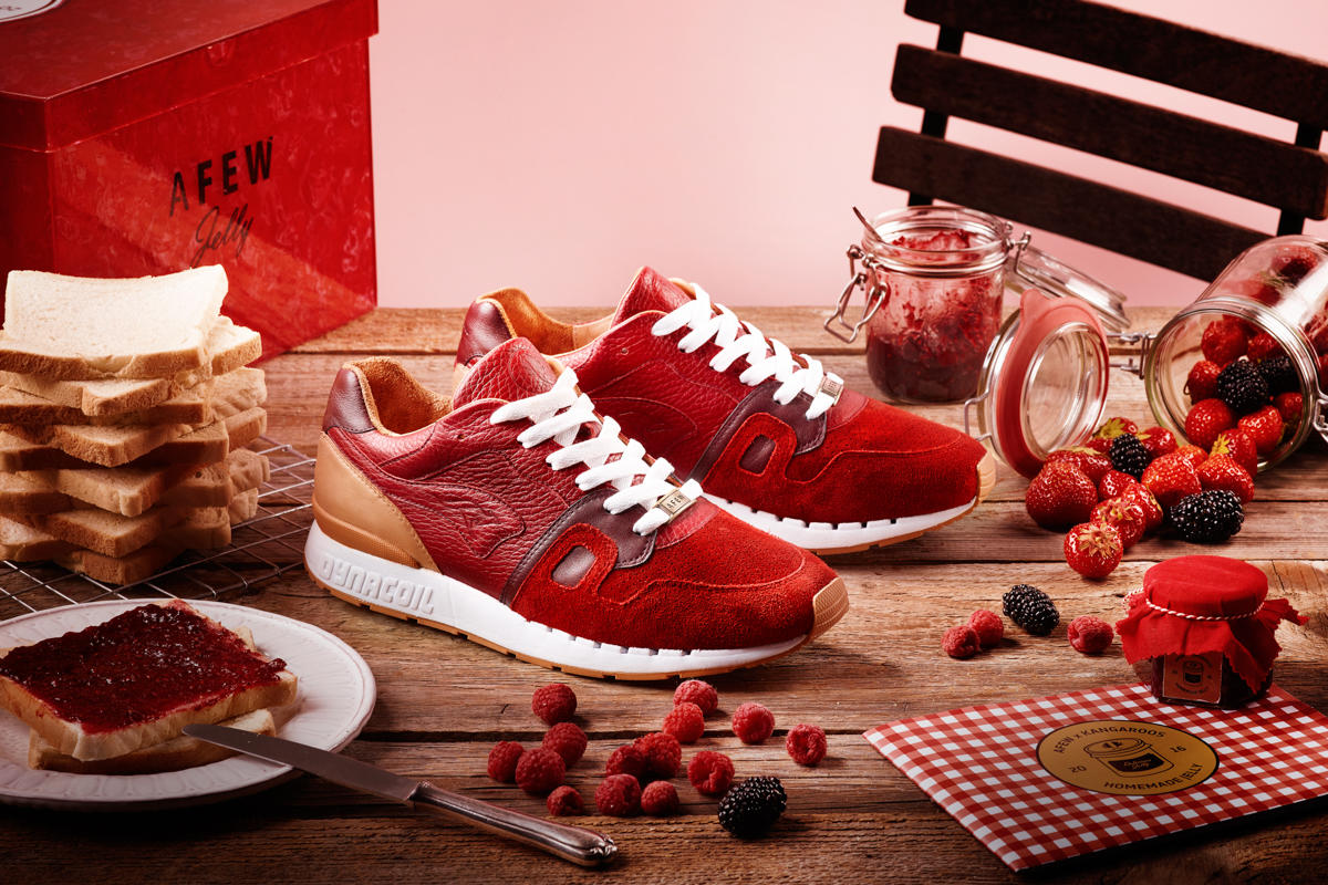 2016 folgte die Fortsetzung zum „Peanut Butter“, der AFEW x KangaROOS Omnicoil II „Jelly“. Als Special gab es zu jedem Paar eine „Jelly“ Plastikbox, ein Marmeladen Rezept und ein Glas mit Marmelade. Für den “Jelly” haben wir uns für einen Materialmix aus Glattleder und Suede entschieden.