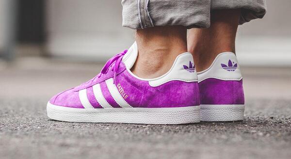 Dieser brandneue Gazelle "Schock Purple" welcher auch erkennbar ist durch seine Nummer BB5484 ist wie zu sehen mit einer guten Form versehen und hat logischerweise eine schicke "Violett" Wildleder Materialauswahl. Der etablierte Runner der Marke adidas Originals imponiert mit der hochwertigen Qualität und zeigt auch dieses Mal die starke "Violett" Wildleder Material Kombo. adidas Originals etabliert in der diesjährigen Sommer Kollektion seinen herausragenden "Shock Purple F16/White/GoldMet." Gazelle "Schock Purple" und die in Herzogenaurach gegründeten Sneaker Brand hat hiermit offenbar einen weiteren Klassiker rausgehauen.