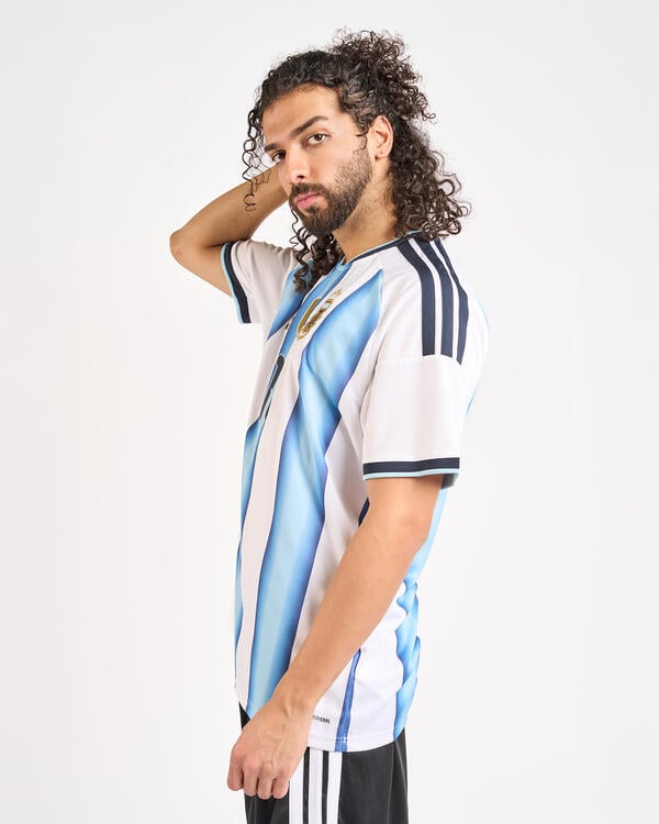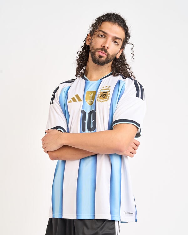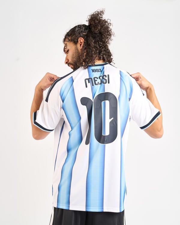 Das Argentinien 26 Messi Heimtrikot ist mehr als nur ein Trikot. Es feiert die argentinische Fußballkultur. Dieses Trikot zeigt zum ersten Mal stolz den dritten Stern, ein Symbol für die Triumphe der Mannschaft in den Jahren 1978, 1986 und 2022.