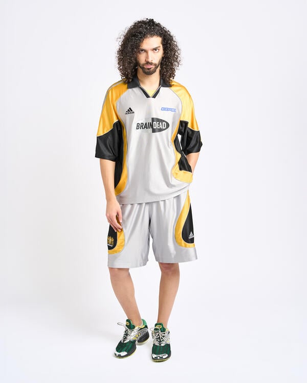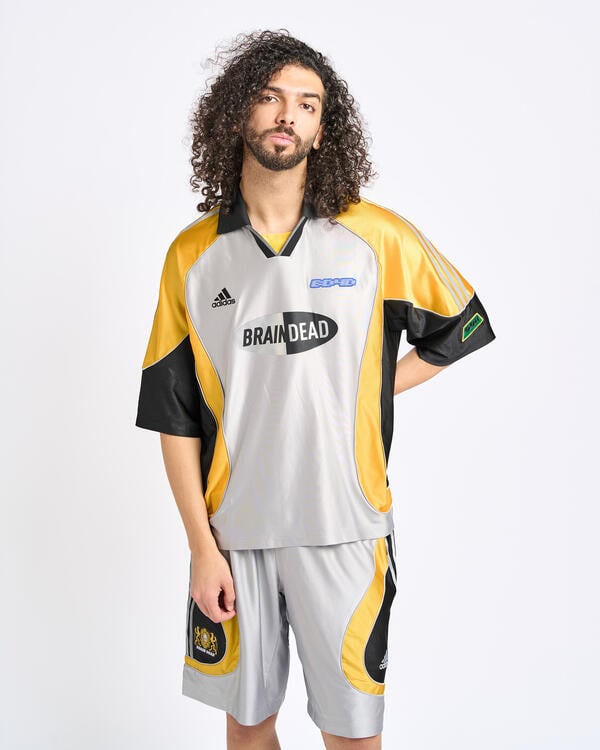 Tauchen Sie ein in die Welt von adidas Originals mit dem Brain Dead Jersey – einer Zusammenarbeit mit dem in Los Angeles ansässigen Kreativkollektiv, das für seinen grafisch geprägten, frechen Stil bekannt ist.