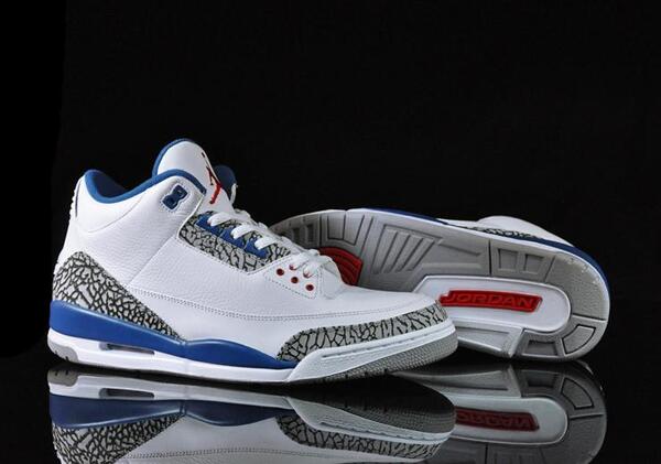 Dieser coole Sneaker aus dem Hause Air Jordan imponiert mit der gewohnten Einzigartigkeit und hat natürlich eine schicke "Grau" Leder Kombination. Der kürzlich vorgestellte 3 (III) Retro mit der Herstellernummer 136064-104 ist offenbar mit einer guten Verarbeitung versorgt und hat sicherlich das typische Air Jordan Brandlogo auf dem Upper.
