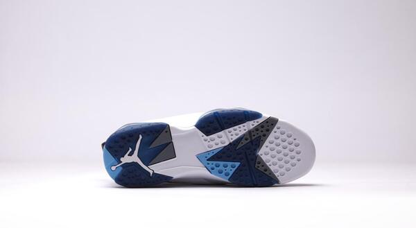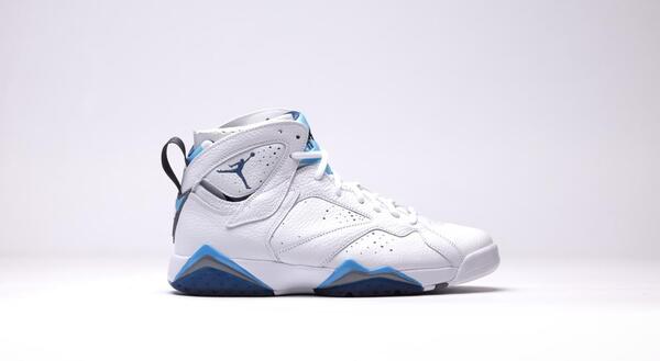 Air Jordan zeigt als Teil der aktuellen Herbst / Winter Kollektion den freshen "Wht/FrnchBl-UnvrstyBl-FlntG" 7 Retro "French Blue" und die aus Amerika stammenden Lifestyle Marke hat hiermit definitiv ein neues Prachtexemplar auf den Markt gebracht. Folgender etablierte Basketball Sneaker der Brand Air Jordan imponiert mit der hochwertigen Qualität und featured selbstverständlich die "Weiss/Blau" Leder Farbkombi.