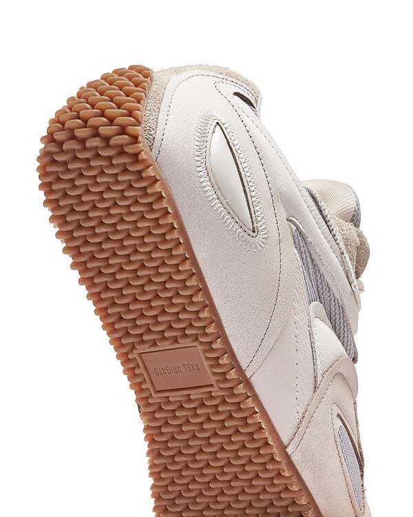 Die mehrschichtige, flache Silhouette des Slow Runner verkörpert das Ethos von Dekonstruktion und Innovation. Das Obermaterial ist eine nahtlose Mischung aus Alt und Neu und interpretiert den kultigen Marathon Runner durch vertraute, fein ausgearbeitete Einsätze aus Leder, Wildleder und Nubukleder neu. Dieses Modell steht auf einer glatten, flachen Laufsohle mit einem einzigartigen, von Strick inspirierten Finish, das Designelemente aus unseren Konfektionskollektionen aufgreift.