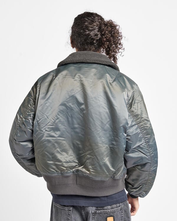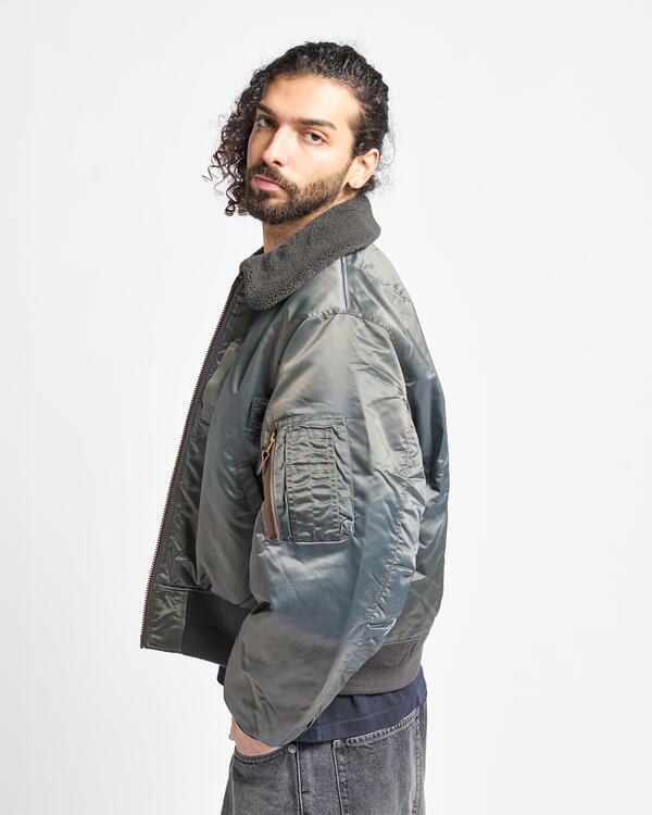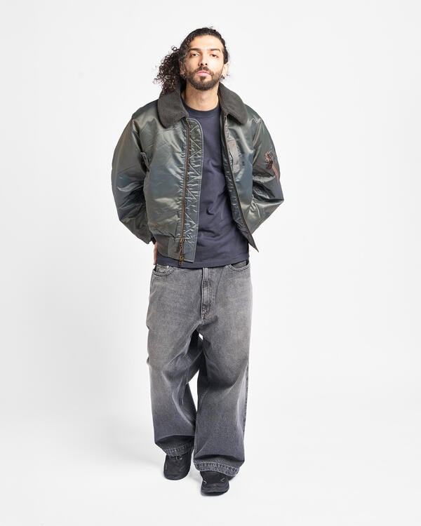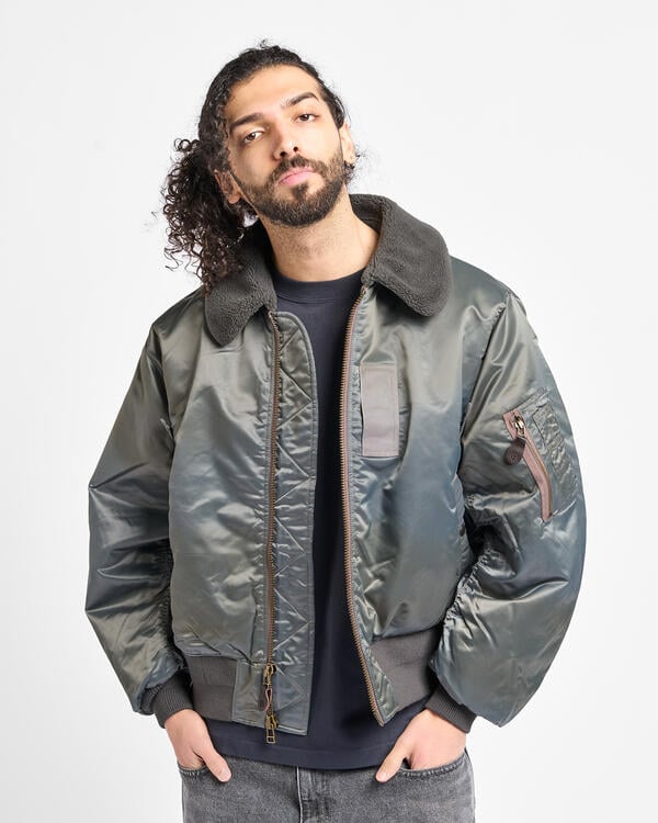 Eine Fliegerjacke des Typs B-15 mit echtem Vintage-Charakter. Basierend auf einer Vintage-Fliegerjacke, sind die Details originalgetreu reproduziert. Um das Original nicht zu verfälschen, wurde besonders auf Details geachtet, wie z. B. gebogene Ärmel, die dem Arm folgen, und dicke Nähte, die eine Faltenbildung erzeugen.