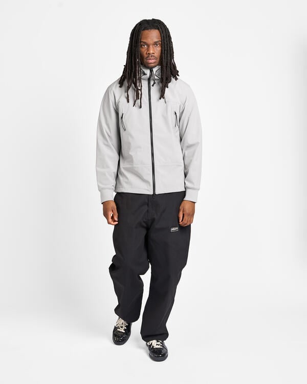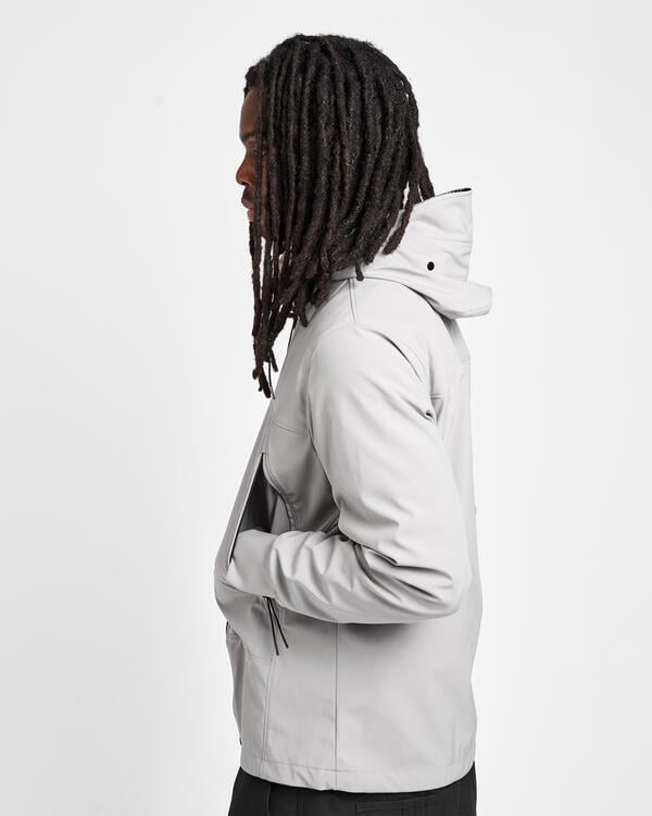Goggle Jacke aus C.P. Shell-R, einem dreilagigen Softshell aus recyceltem Polyester mit mechanischer Dehnbarkeit, zertifiziert nach dem Global Recycled Standard (GRS). Dieses Multifilamentgewebe kombiniert Komfort und Schutz und bietet eine Wassersäule von bis zu 5000 mm sowie Winddichtigkeit. Mit Anti-Drop-Behandlung. Reguläre Passform.