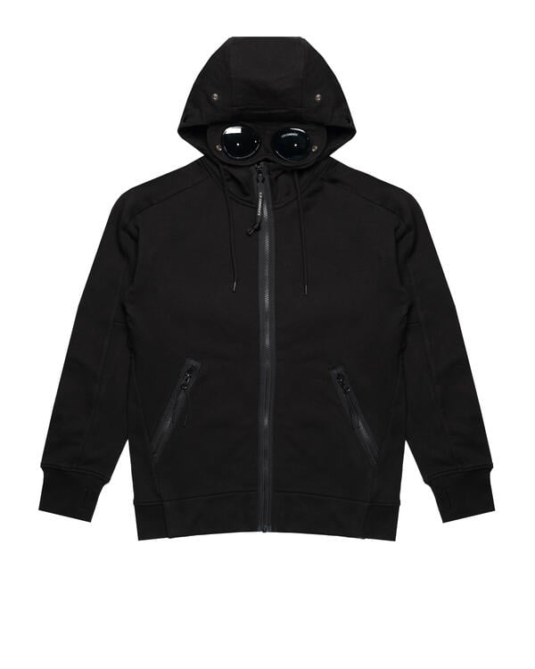 Goggle-Sweatshirt aus diagonal hochgezogenem Fleece, einem mittelschweren, gebürsteten, diagonal gewebten Baumwollstoff. Der weiche Stoff sorgt für Komfort und Bewegungsfreiheit. Das Sweatshirt verfügt über die kultige, verstellbare Goggle-Kapuze von C.P. Company, seitliche Reißverschlusstaschen sowie gerippte Bündchen und Saum. Mit Daumenloch an den Ärmeln.