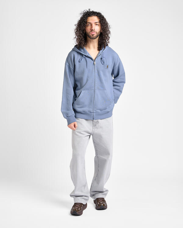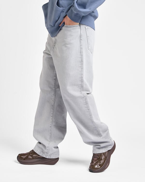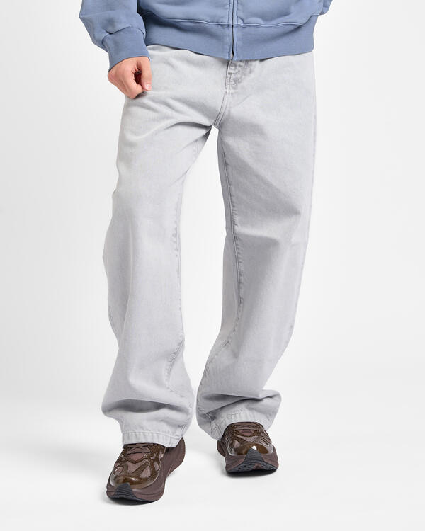 Die Landon Pant hat ein Five-Pocket-Design und besteht aus einem schweren Baumwolldenim, der durch eine Stone-Waschung eine ausgeblichene Optik erhält. Die Hose hat eine lockere Taper-Passform mit einer normalen Bundhöhe. Auf der Gesäßtasche befindet sich ein gewebtes Square Label.