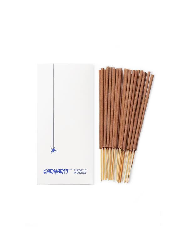 Die Theory and Practice Incense Sticks sind in Zusammenarbeit mit dem japanischen Label Kuumba entstanden, das für seine traditionelle Räucherstäbchen und Kerzen bekannt ist. Zu dem Set gehören 15 Bambusstäbchen, die mit dem exklusiv für Carhartt WIP designten F/W25 Duft versehen sind. Die Brenndauer beträgt in etwa 30 Minuten.