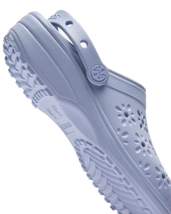 Der Classic Clog mit frischem, femininem Twist! Eine neue Evolution unseres Clogs: Die floralen Cut-Outs verleihen einen fröhlichen, verspielten Look mit passenden Nieten im floralen Design. Das ergonomische, leichte Design begeistert mit dem beliebten Komfort des Originals. Mit Jibbitz-Ansteckern kannst du deinen persönlichen Stil in Szene setzen. Dein auffallender, bequemer Schuh-Favorit − jetzt mit floralem, verspieltem Update!