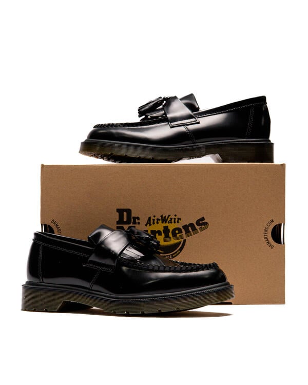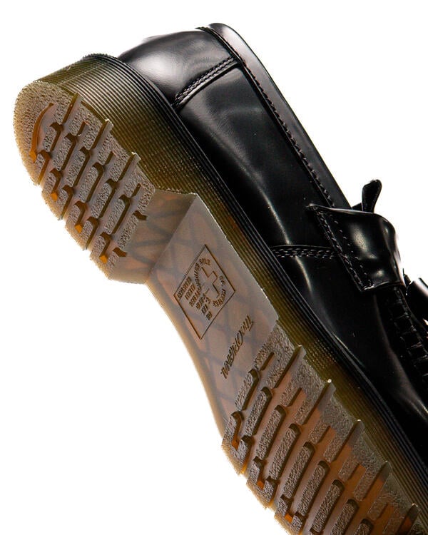 Der Tasselloafer ist ein Klassiker der Subkultur, und hier präsentiert in unserem polierten Smooth Leder - eine Variante von dem klassischen Dr. Martens Leder: strapazierfähig, mit glatter polierter Oberfläche. Dieser klassische Halbschuh mit Quasten in schwarzem Polished Smooth Leder hat eine Goodyear-Rahmennaht. Das heißt, dass das Obermaterial und die Sohle verschweißt und dann zusammengenäht wurden. Die legendäre Dr. Martens Air Cushion Sohle ist öl- und fettbeständig, sowie abrieb- und rutschfest.