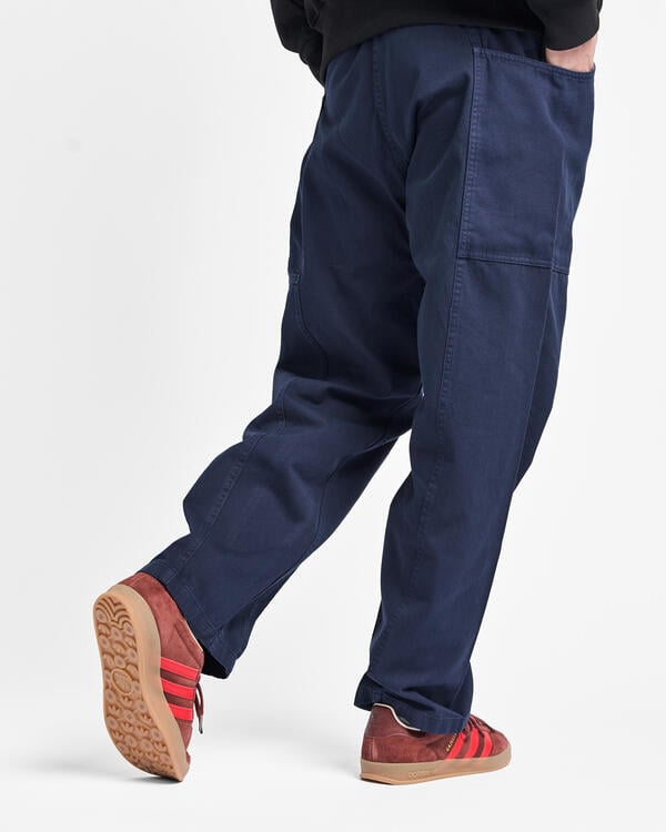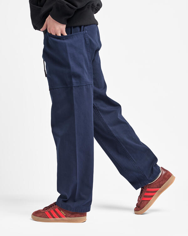 Diese Hose bietet Platz für Gadgets, die zum modernen Lebensstil passen, und behält gleichzeitig die Funktionalität beim Klettern bei, die die Wurzeln der Marke ausmacht. Die Silhouette wird durch große Taschen hervorgehoben, die sich von vorne bis hinten erstrecken, und hat eine bequeme Lockerheit. Für diese Taschen wird strapazierfähiges Canvas verwendet, während der Kontrast zwischen den beiden Materialien durch die Stückfärbung ein weiteres bemerkenswertes Merkmal ist. Außerdem ist der Gurt mit dem Markenlogo auf der rechten Seite sowohl im Freien als auch in der Stadt nützlich, da er Schlüssel und Flaschen aufnehmen kann. Sie bestehen aus 100 % Bio-Baumwolltwill mit hoher Strapazierfähigkeit, Spannung und Steifigkeit, der selbst anstrengenden Bewegungen standhält, und sind gefärbt, um ihrem Aussehen Charakter zu verleihen.