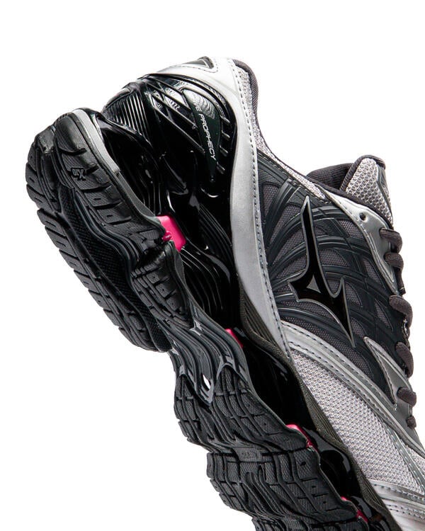 Der Mizuno Wave Prophecy ist ein hochwertiger Laufschuh, der für seine herausragende Dämpfungstechnologie bekannt ist. Mit der einzigartigen Mizuno Wave-Technologie bietet er eine optimale Stoßdämpfung und eine effiziente Energierückgabe bei jedem Schritt. Das Obermaterial besteht aus atmungsaktivem Mesh-Material, das für eine gute Belüftung sorgt und den Fuß angenehm kühl hält.