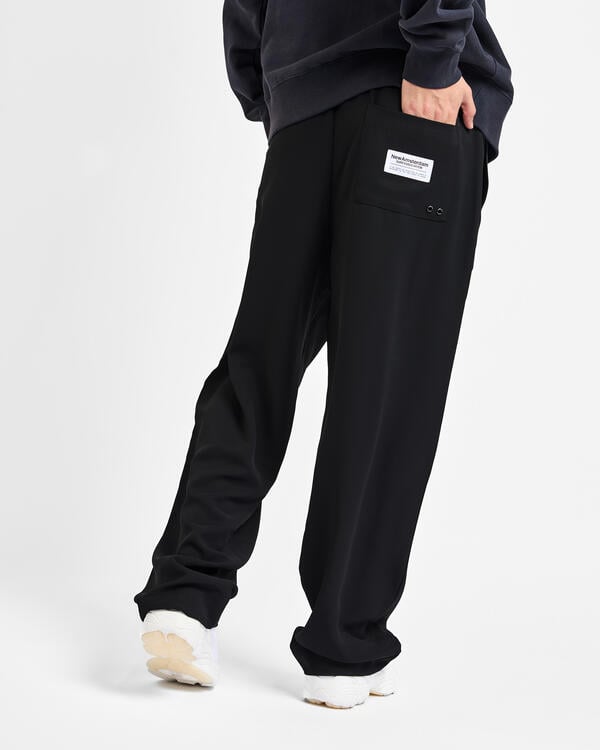 Hose in entspannter Passform mit mittlerer Taille, elastischem Bund und geradem Bein. Mit Metallösen, einer aufgesetzten Tasche und einem gewebten Etikett auf der Gesäßtasche.