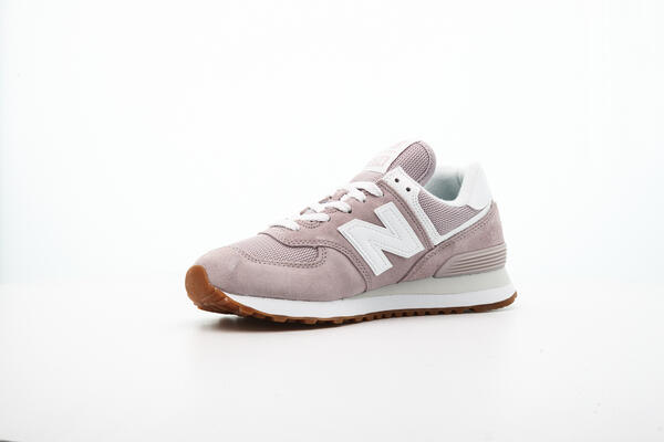 Mit dem WL 574 PA2 erweitert New Balance ihre Farbpalette rund um die WL 574 Modelle. Das Upper besteht wie gewohnt aus einem Mix von Mesh und Leder und ist in einem hellen Lilaton gehalten. Das markante N als Markenlogo an der Seite setzt sich, ebenso wie die Fersenverstärkung in einem weißen Leder von dem lilafarbenen Upper ab. Die Schnürsenkel sind ebenso wie die Midsole in weiß gehalten. Die gummierte Außensohle ist dagegen in braun gehalten.