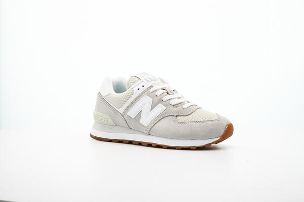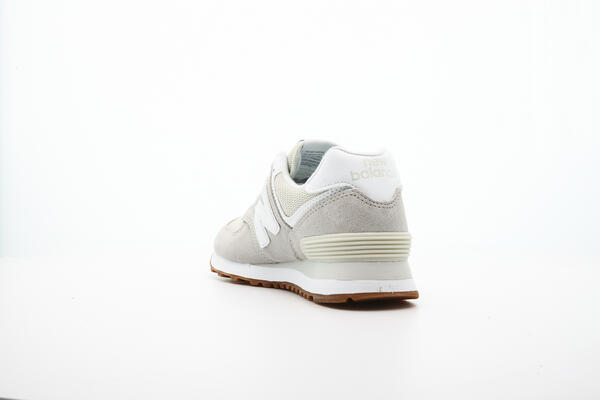 Mit dem WL 574 PC2 erweitert New Balance ihre Farbpalette rund um die WL 574 Modelle. Das Upper besteht wie gewohnt aus einem Mix von Mesh und Leder und ist in einem matten silber-grau gehalten, dabei unterscheidet sich das Mesh Upper farblich von dem Ledder Upper leicht.. Das markante N als Markenlogo an der Seite setzt sich, ebenso wie die Fersenverstärkung in einem weißen Leder von dem hellgrauen Upper ab. Die Schnürsenkel sind ebenso wie die Midsole in weiß gehalten. Die gummierte Außensohle ist dagegen in braun gehalten.
