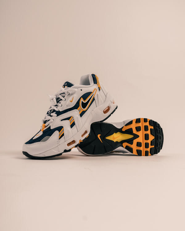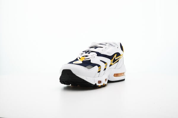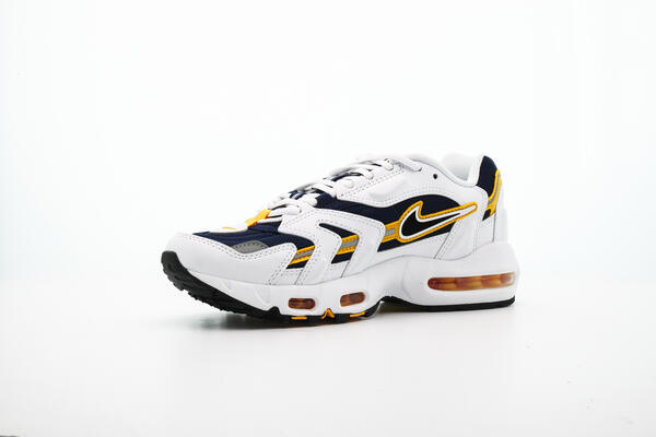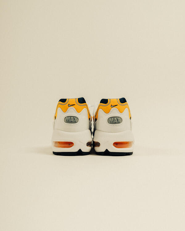 Nachdem der AIR MAX 96 II "WHITE" zum ersten Mal anlässlich des 20sten Jubiläum Nikes released wurde, kommt er jetzt als OG zurück. Das Navyblaue Mesh Upper und die weißen Leder Overlays werden durch gelbe Nähte und Akzente aufgewertet. Die Air-Technologie, die durch die kleinen Fenster in der Sohle zu sehen ist, darf natürlich auch nicht fehlen. Die Air-Fenster werden durch ihr gelbes Skelett nochmals hervorgehoben.