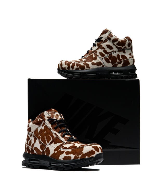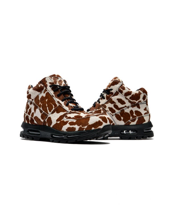 Glattes Ponyfellleder kombiniert mit geflochtenen Schnürsenkeln sorgt für einen auffälligen, luxuriösen Look des Air Max Goadome. Die dicke Lauffläche der Außensohle verleiht dem Schuh einen robusten Look, während die weiche Schaumstoff-Mittelsohle und die Air-Einheiten jeden Schritt federleicht machen.