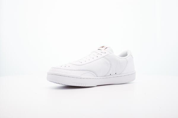 In dem Nike WMNS COURT VINTAGE PRM "WHITE" findet sich der klassische Retro-Tennis-Charme. Das Obermaterial aus Leder ist in weiß gehalten und wird lediglich durch das kleine gestickte Branding an der Seite des Mittelfußes durchbrochen. Das Branding besteht aus einem schwarzen Swoosh und dem Nike Schriftzug in orange. Dieses findet sich auch auf dem Zungentag wieder. Auf der Fersenverstärkung prangt der schwarze Nike Schriftzug. Der klassische Tennis-Look aus den 80er Jahren wird auch durch die weiße Außensohle unterstützt und komplettiert so den Look.