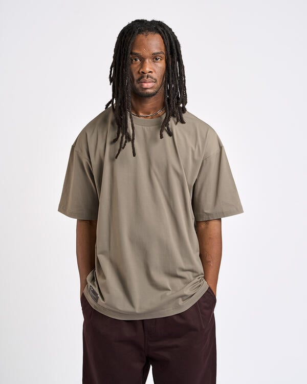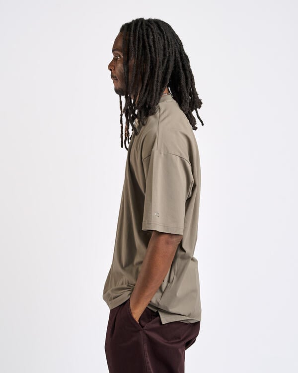 Lässiger Look für ein vielseitiges T-Shirt, das zahlreiche Funktionen erfüllt, eine stilvolle Ergänzung zu einem Athleisure-Outfit, aber auch ein leistungsstarkes Kleidungsstück, das sich für Outdoor-Aktivitäten eignet. In allen Fällen sorgt die spezielle Baumwoll- und Polyurethan-Mischfaser dafür, dass du jederzeit kühl bleibst, und bietet innovativen Komfort, selbst wenn du bei heißem Wetter beschäftigt bist, dank der Anwendung der Hydrolix-Technologie, die Feuchtigkeit und Schweiß von der Haut ableitet, um dieses unangenehme, klamme Gefühl zu verhindern. Bequemes Rundhals-Design und vier einfarbige Designs zur Auswahl.