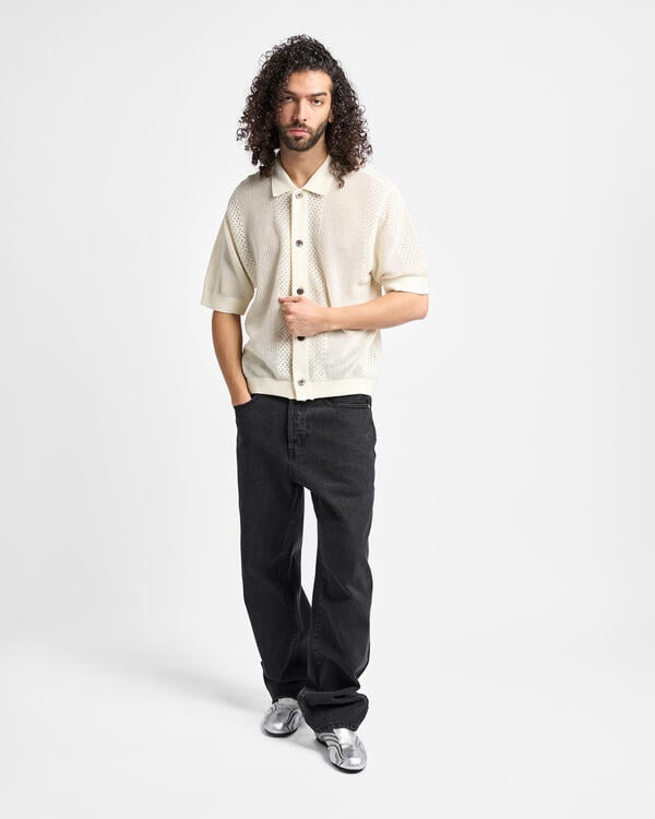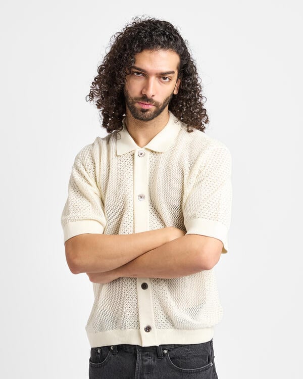 - Rippkragen, Knopfleiste, Saum und Ärmel