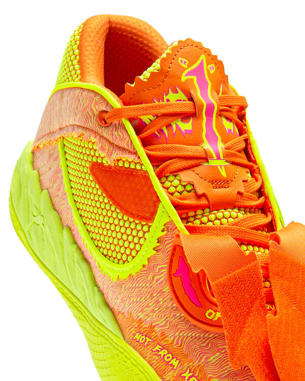Melo ist nicht aufzuhalten - der MB.05 auch nicht. Zu den Designdetails gehören geformte Wing-Riemen an der Ferse, ein durchgehender Wing-Print auf dem Basis-synthetik, eingebettete Details wie Melos „One of One“ Signatur sowie ein geformter Totenkopf auf der Sohle. Gemacht für Speed, Style und Statement-Spiele – der MB.05 ist hier, um Power in dein Spiel zu bringen.
