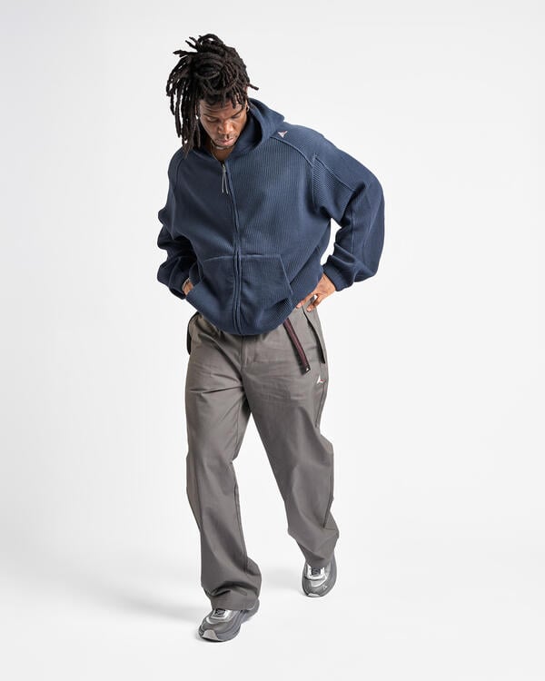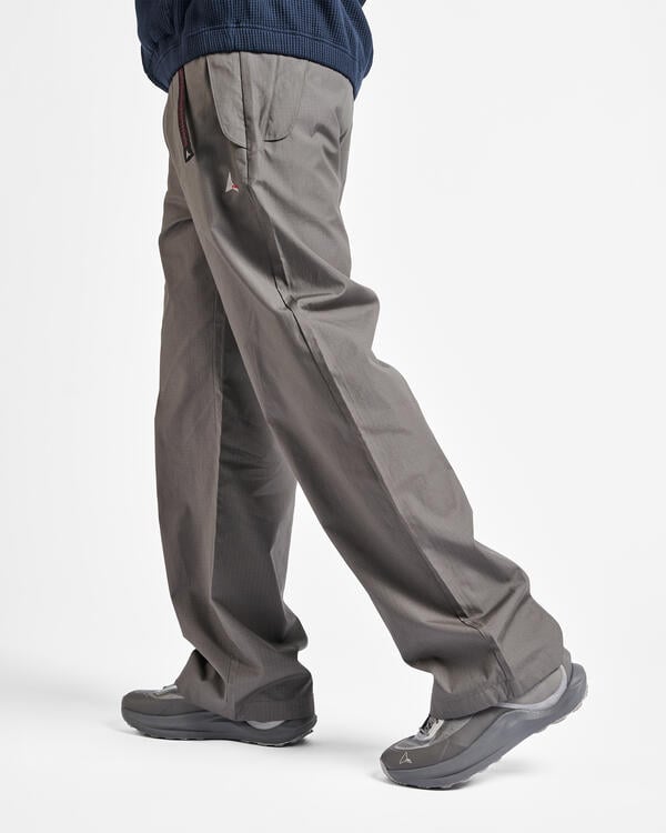 Locker geschnittene Twill-Chino aus leichtem Baumwollgewebe. Verfügt über einen verstellbaren dünnen Jacquard-Tausendfüßler-Gürtel an der Taille für eine anpassbare Passform. Mit symmetrischen Vorder- und Gesäßtaschen. Mit einem gestickten Logo auf der Vorderseite.